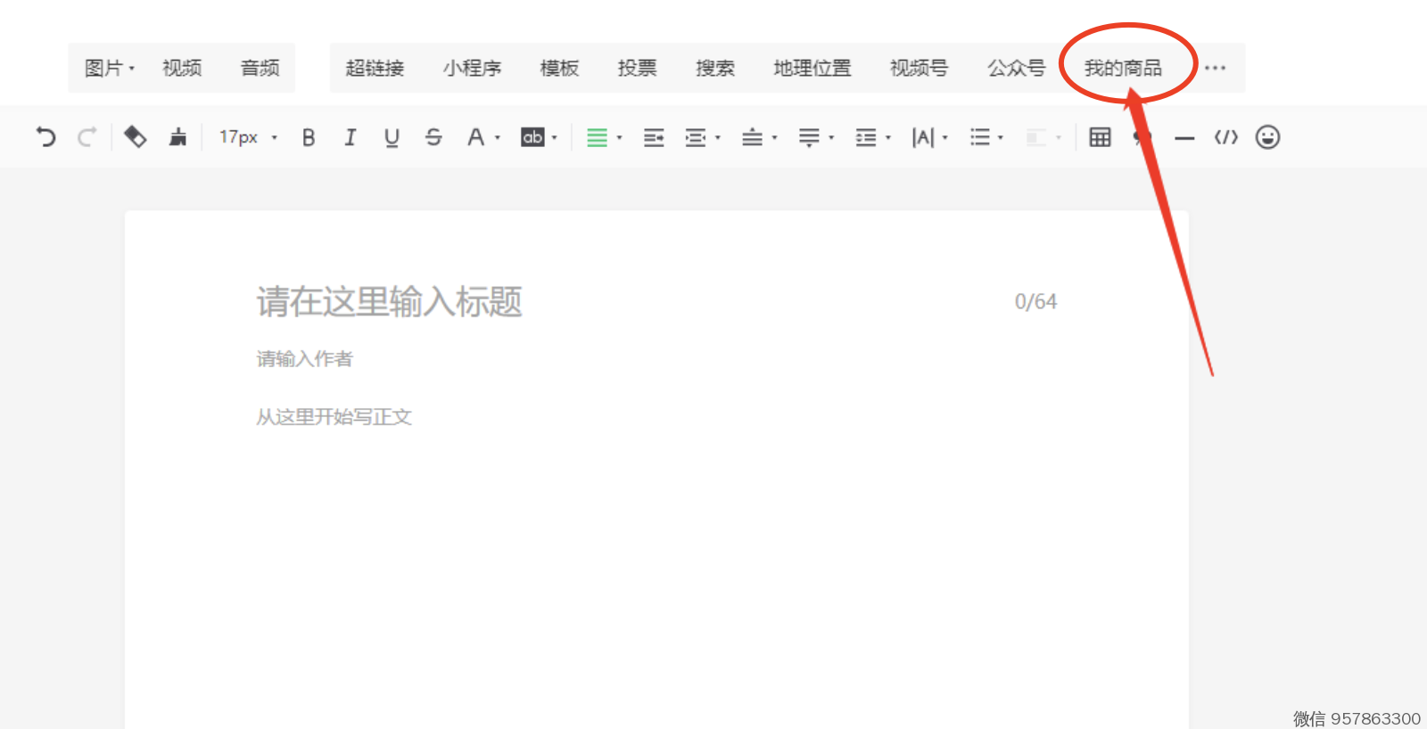 3、开通后,在 文章编辑器,可以看到入口,找到你需要推荐的商品,即可